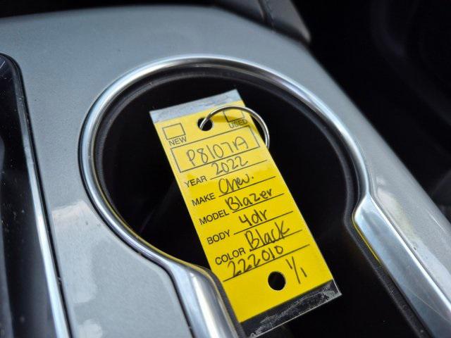 Priced below KBB Fair Purchase Price! Odometer is 2281 miles below market average!Clean CARFAX.Black 2022 Chevrolet Blazer LT 4D Sport Utility FWD 2.0L Turbocharged 9-Speed Automatic with Overdrive** CLEAN VEHICLE HISTORY...NO ACCIDENTS ** Apple CarPlay/Android Auto Preferred Equipment Group 2LT Wheels: 18"" Bright Silver Aluminum 170 Amp Alternator 3.47 Final Drive Axle Ratio 4-Wheel Disc Brakes 6 Speakers 6-Speaker Audio System Feature ABS brakes Air Conditioning Alloy wheels AM/FM radio: SiriusXM Auto High-beam Headlights Automatic temperature control Brake assist Bumpers: body-color Child-Seat-Sensing Airbag Compass Delay-off headlights Driver door bin Driver vanity mirror Dual front impact airbags Dual front side impact airbags Electronic Stability Control Emergency communication system: OnStar and Chevrolet connected services capable Exterior Parking Camera Rear Four wheel independent suspension Front anti-roll bar Front Bucket Seats Front Center Armrest Front dual zone A/C Front reading lights Fully automatic headlights Heated door mirrors High-Intensity Discharge Headlights Illuminated entry Knee airbag Leather Shift Knob Low tire pressure warning Occupant sensing airbag Outside temperature display Overhead airbag Overhead console Panic alarm Passenger door bin Passenger vanity mirror Power door mirrors Power driver seat Power steering Power windows Premium Cloth Seat Trim Radio data system Radio: Chevrolet Infotainment 3 System Rear anti-roll bar Rear reading lights Rear seat center armrest Rear window defroster Rear window wiper Remote keyless entry Ride & Handling Suspension Security system SiriusXM Radio Speed control Speed-sensing steering Split folding rear seat Spoiler Steering wheel mounted audio controls Tachometer Telescoping steering wheel Tilt steering wheel Traction control Trip computer Variably intermittent wipers Voltmeter Apple CarPlay/Android Auto Preferred Equipment Group 2LT Wheels: 18"" Bright Silver Aluminum.Be sure to contact Internet Sales for details. CALL 843-292-8585. Proudly serving: Florence Sumter Darlington Marion Charleston Columbia Conway Camden Aynor Lake City Lakewood Conway Myrtle Beach Hartsville and all of greater South Carolina!