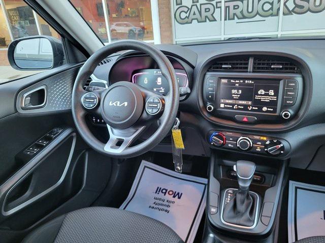 Priced below KBB Fair Purchase Price! Odometer is 9896 miles below market average!CARFAX One-Owner.Gravity Gray 2023 Kia Soul LX 4D Hatchback FWD 2.0L I4 DOHC CVT16"" Alloy Wheels Blind-Spot Collision-Avoidance Assist Lane Change Assist LX Technology Package Rear Cross-Traffic Collision Avoidance Assist 16"" Steel Wheels 4-Wheel Disc Brakes 6 Speakers ABS brakes Air Conditioning AM/FM radio Apple CarPlay & Android Auto Auto High-beam Headlights Brake assist Bumpers: body-color...